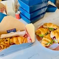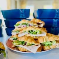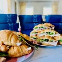 Choose mini croissants or full-size posh sandwich made on rustic bread. Comes with kettle chips and a sweet finisher. See sandwiches below.